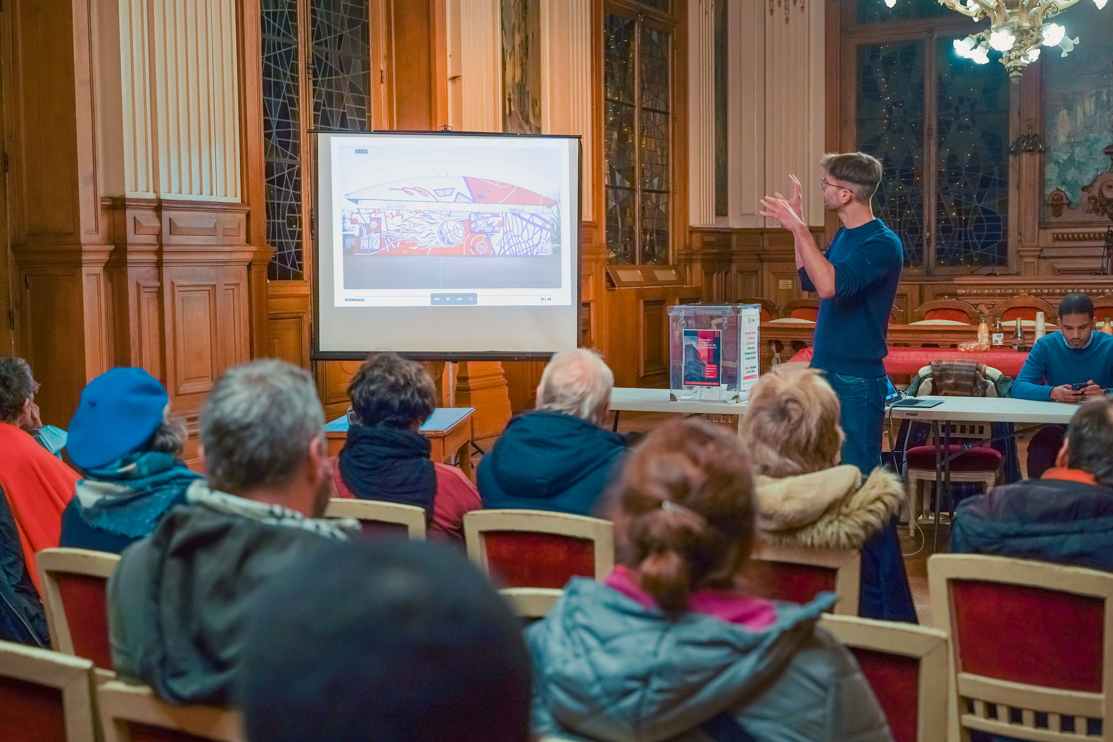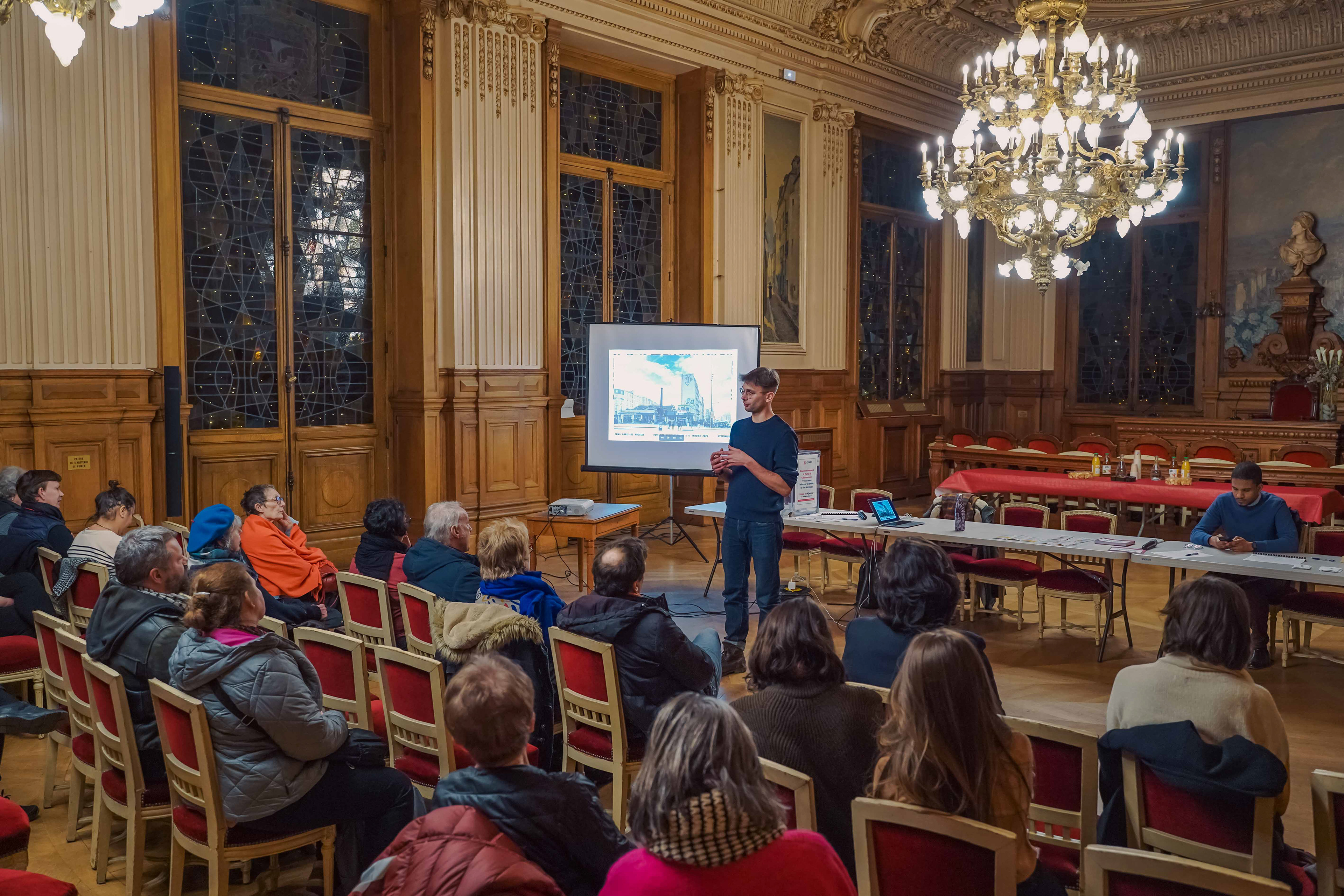 Réunion publique à la Mairie du 18ème arrondissement le 16 janvier 2024. Photos : ©Hypermur & Collectif Le Réseau