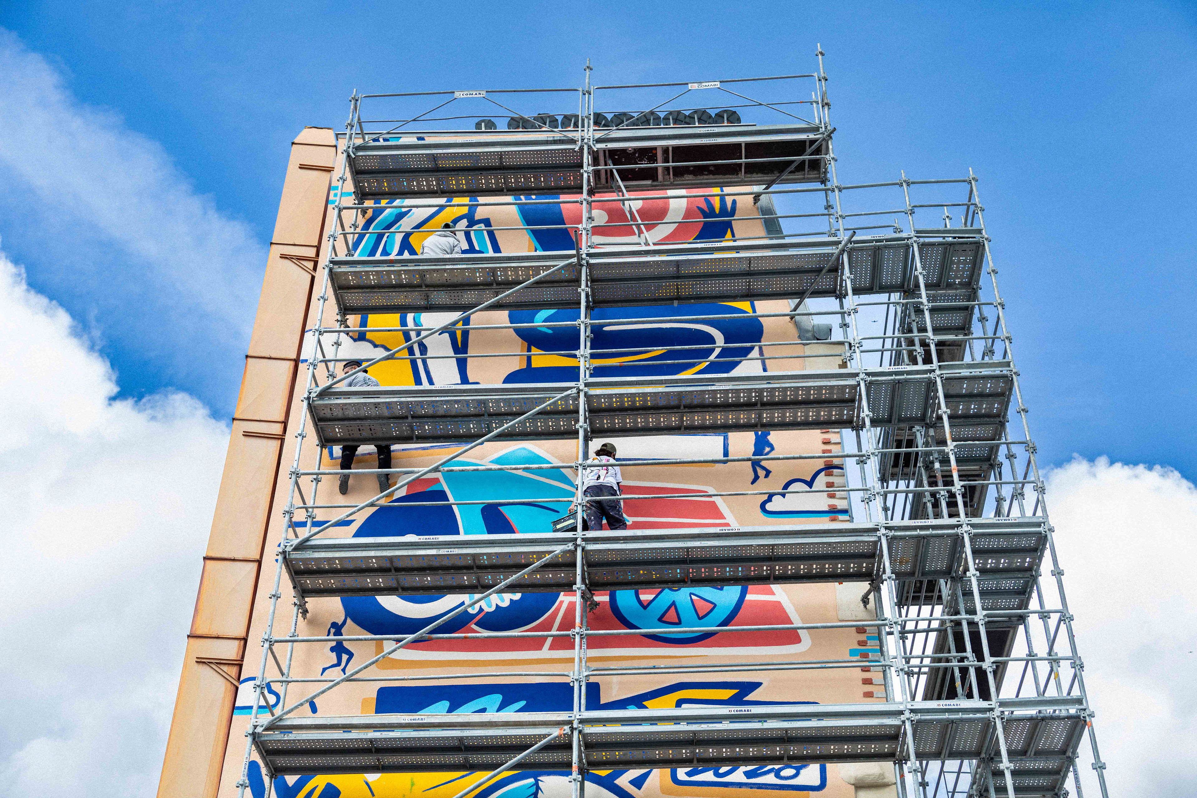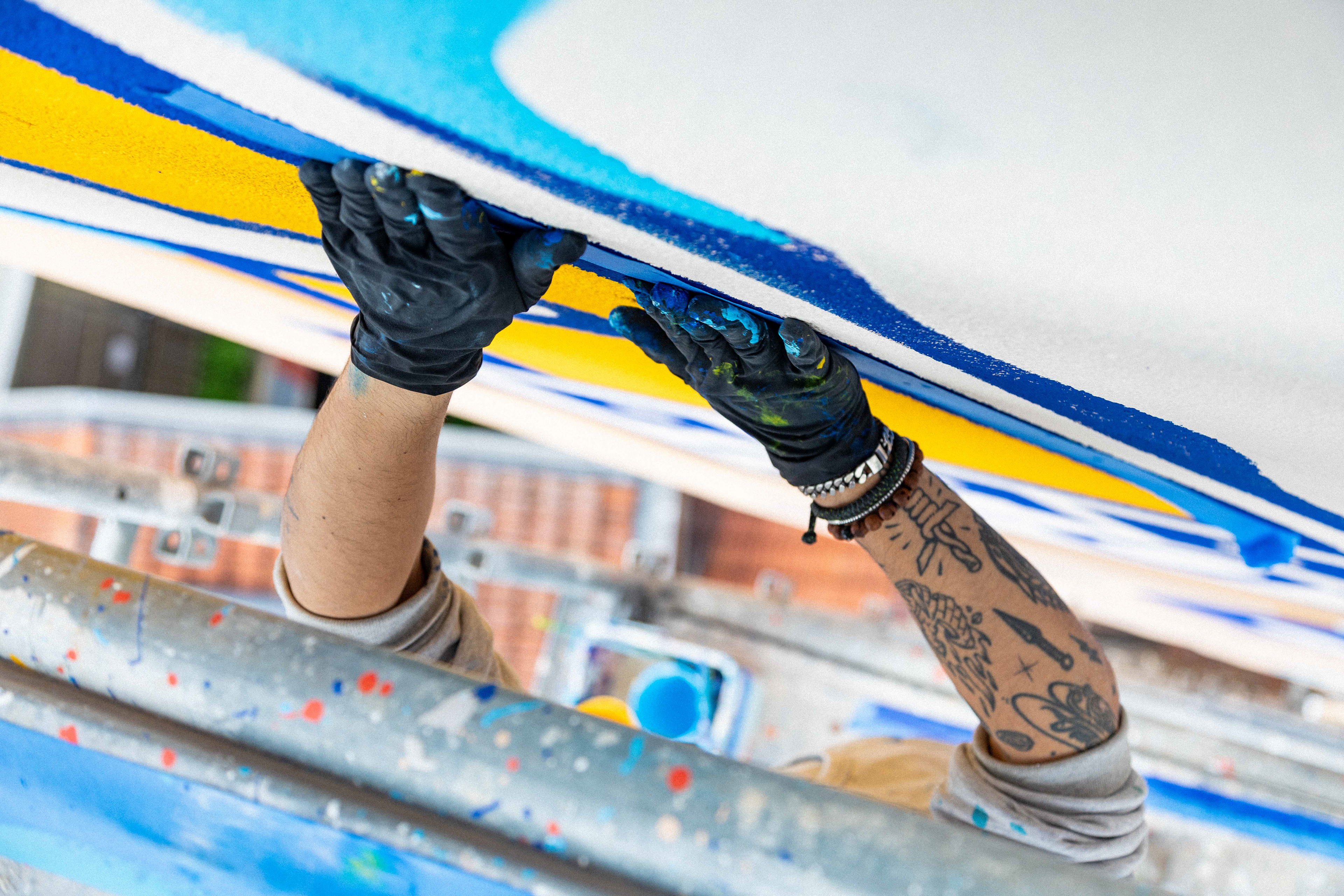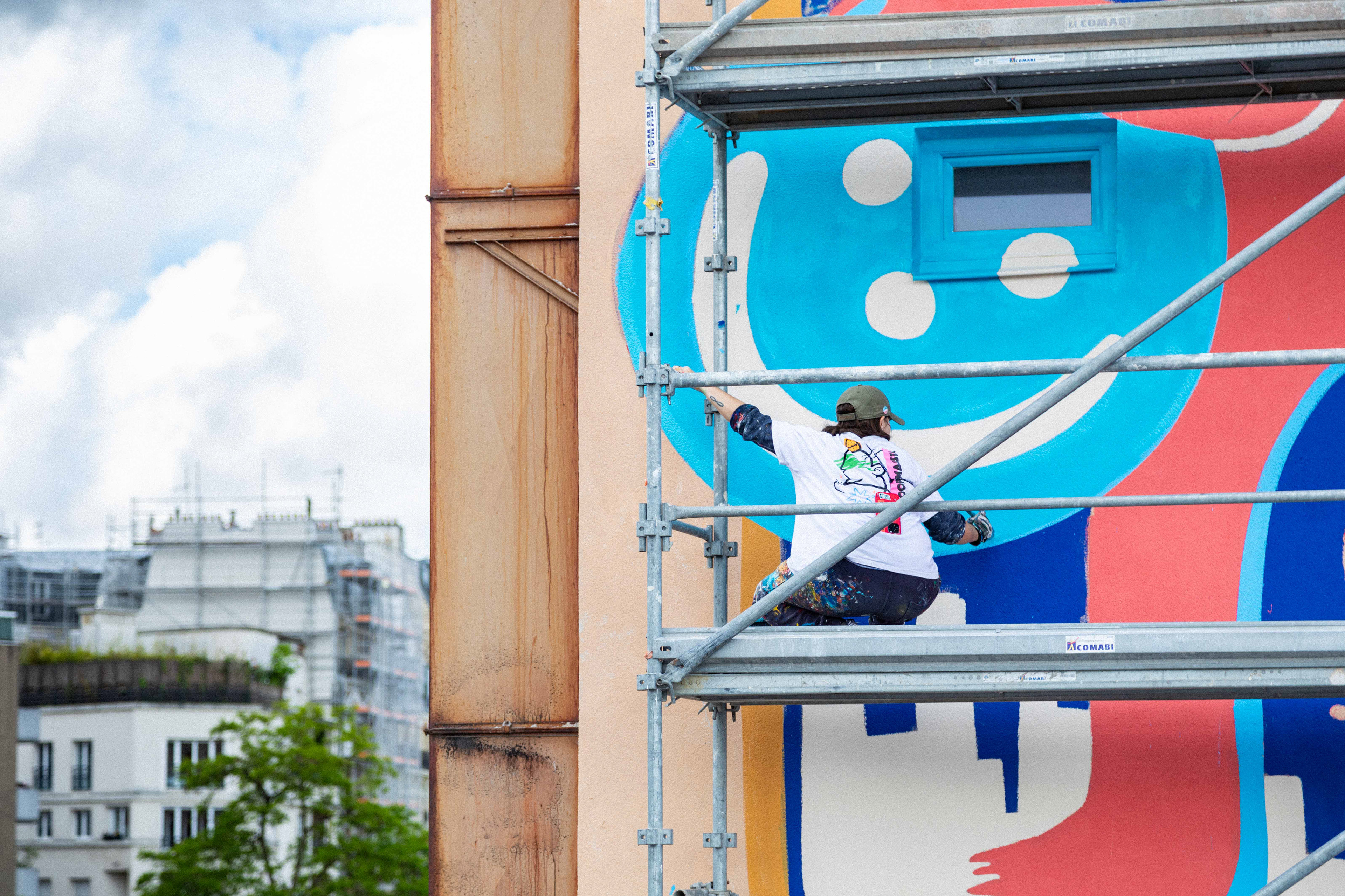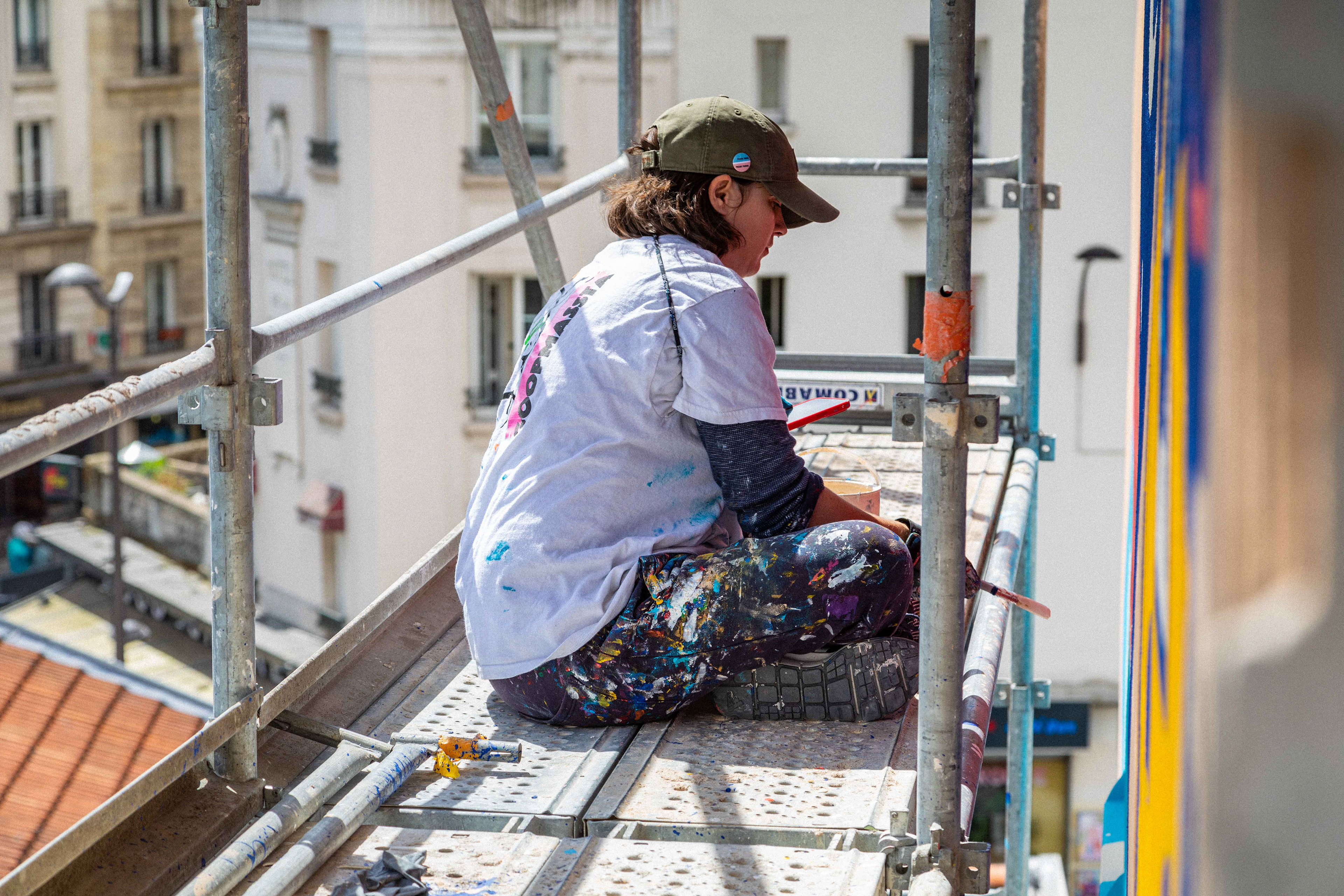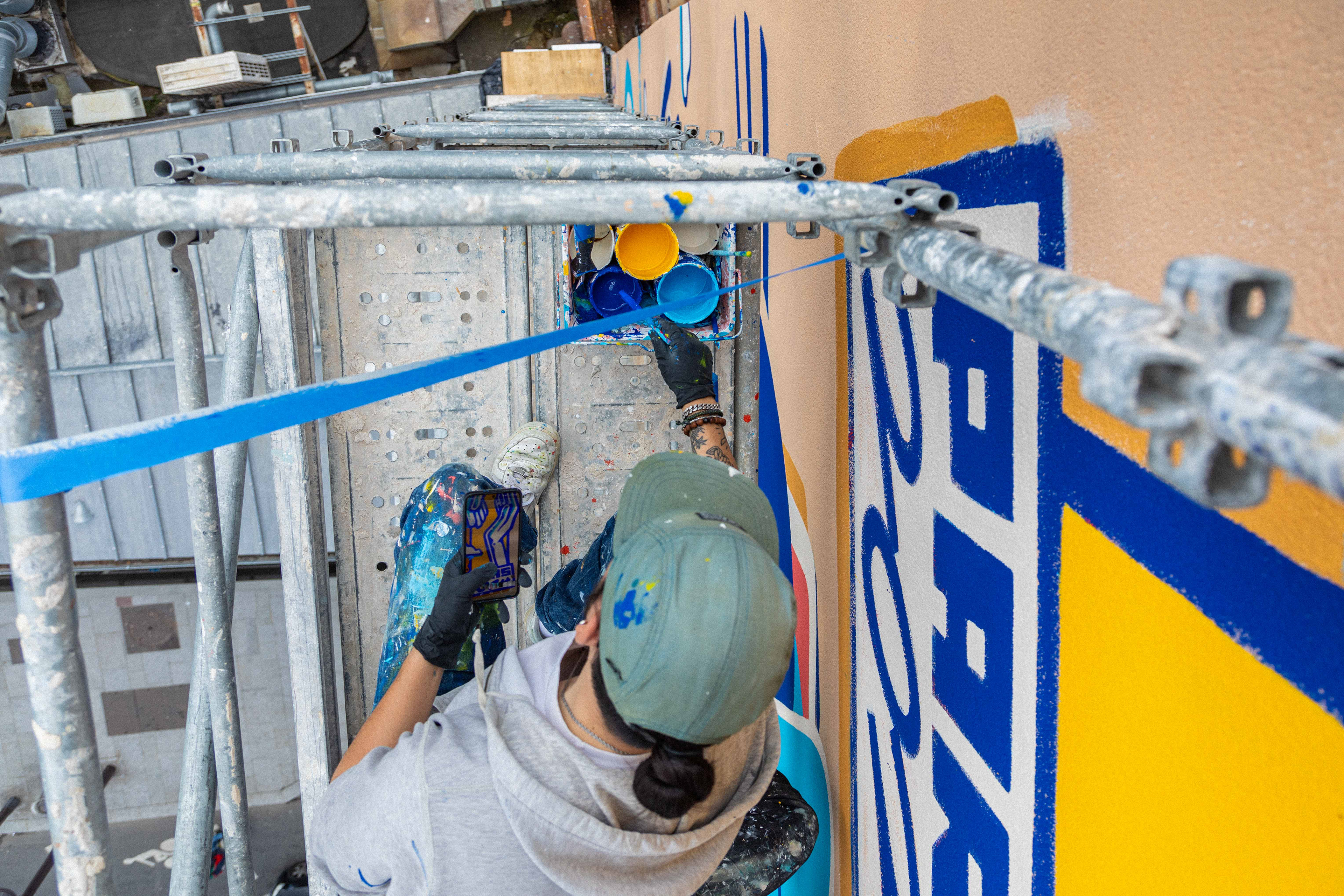 Sur le chantier avec les artistes Katbing & Kekli. Crédits photo : ©Hypermur / Collectif Le Réseau