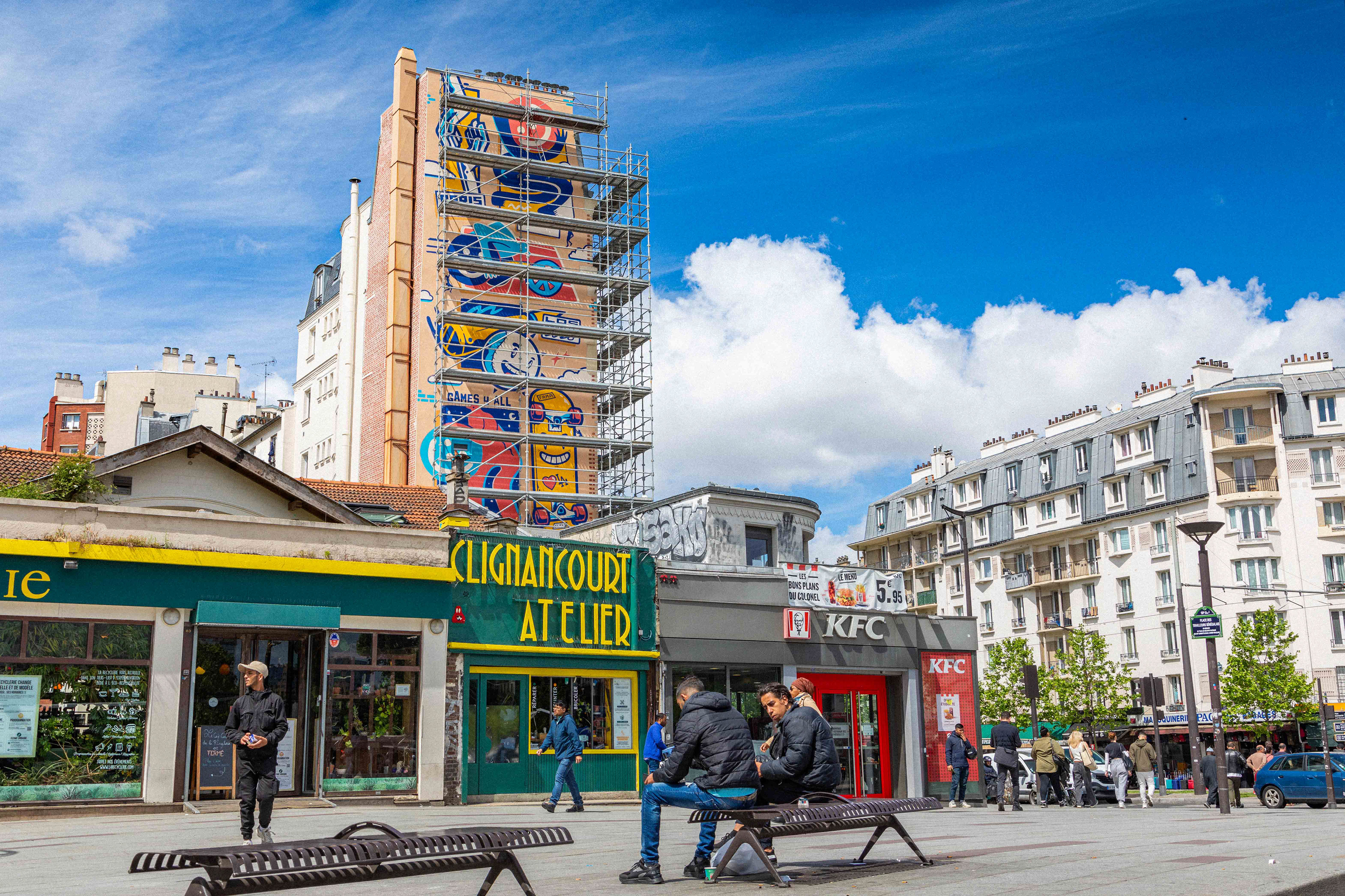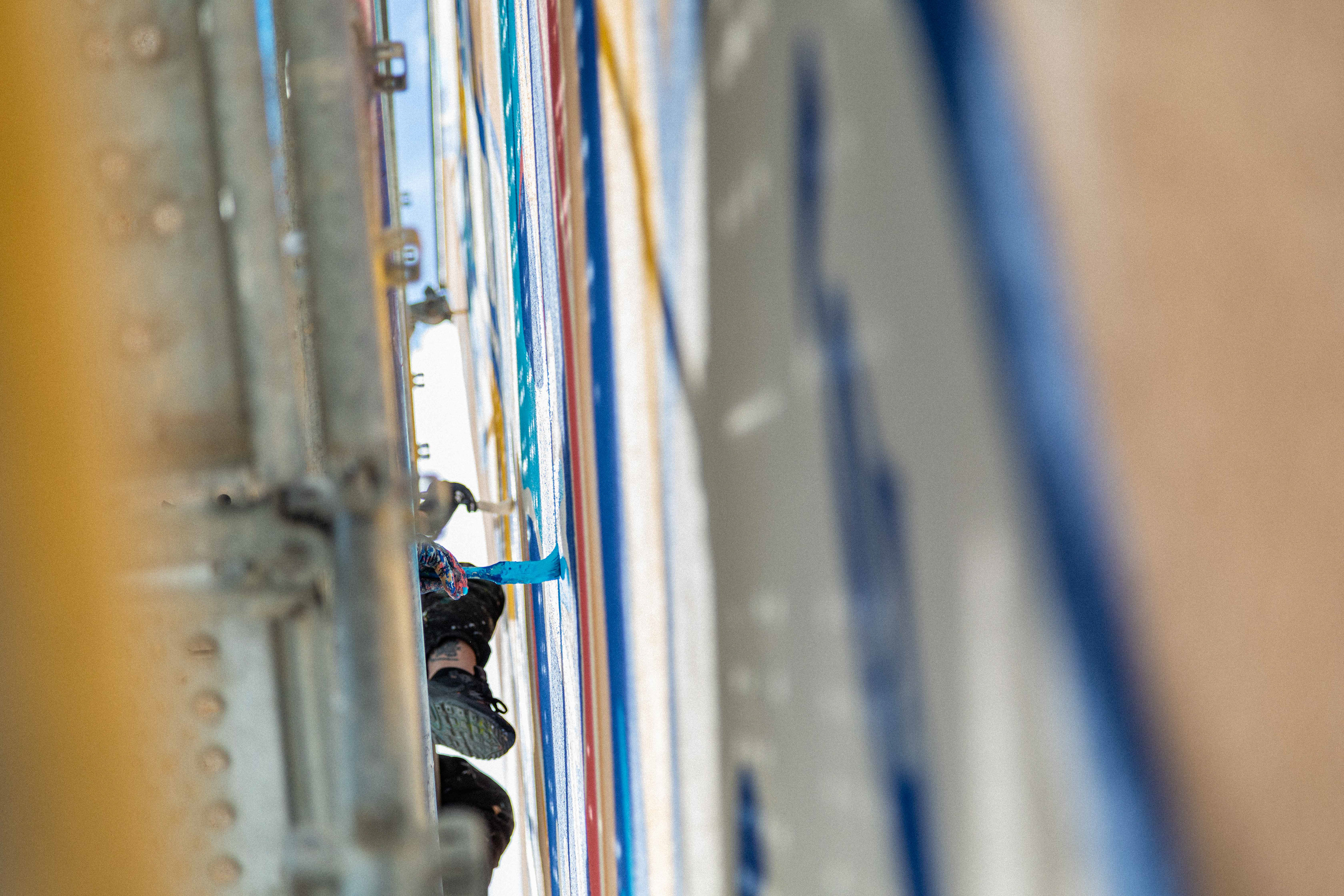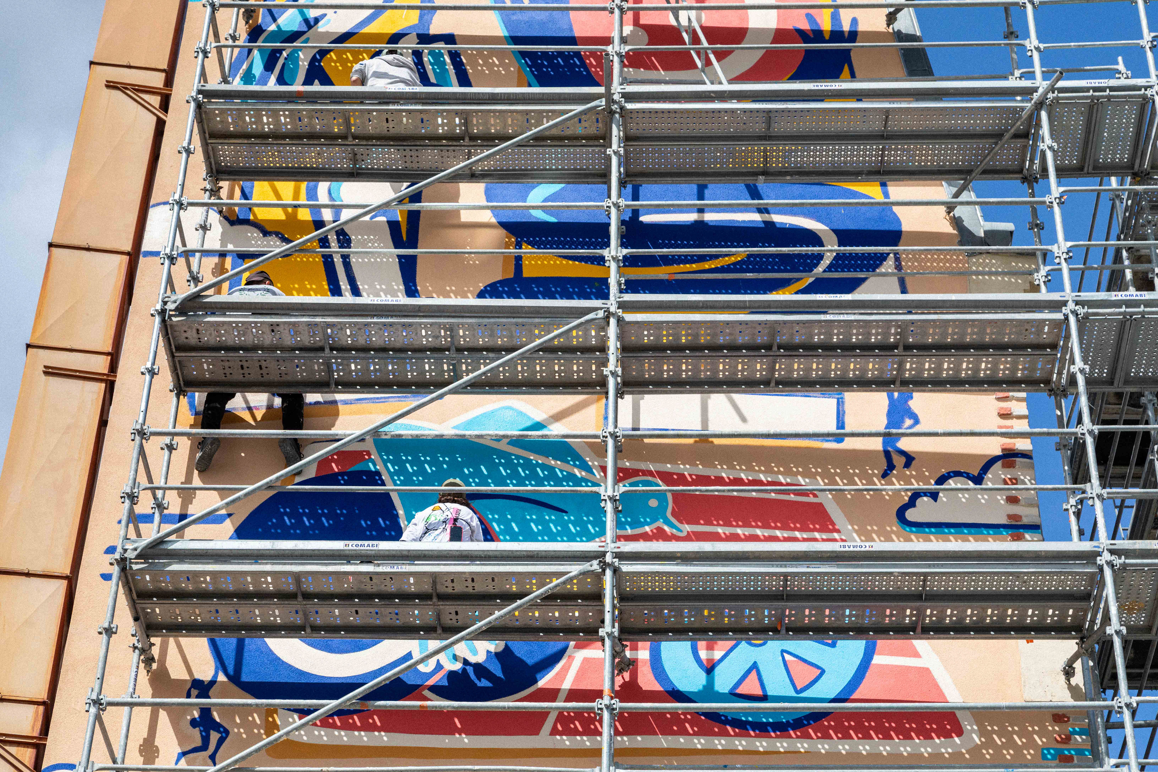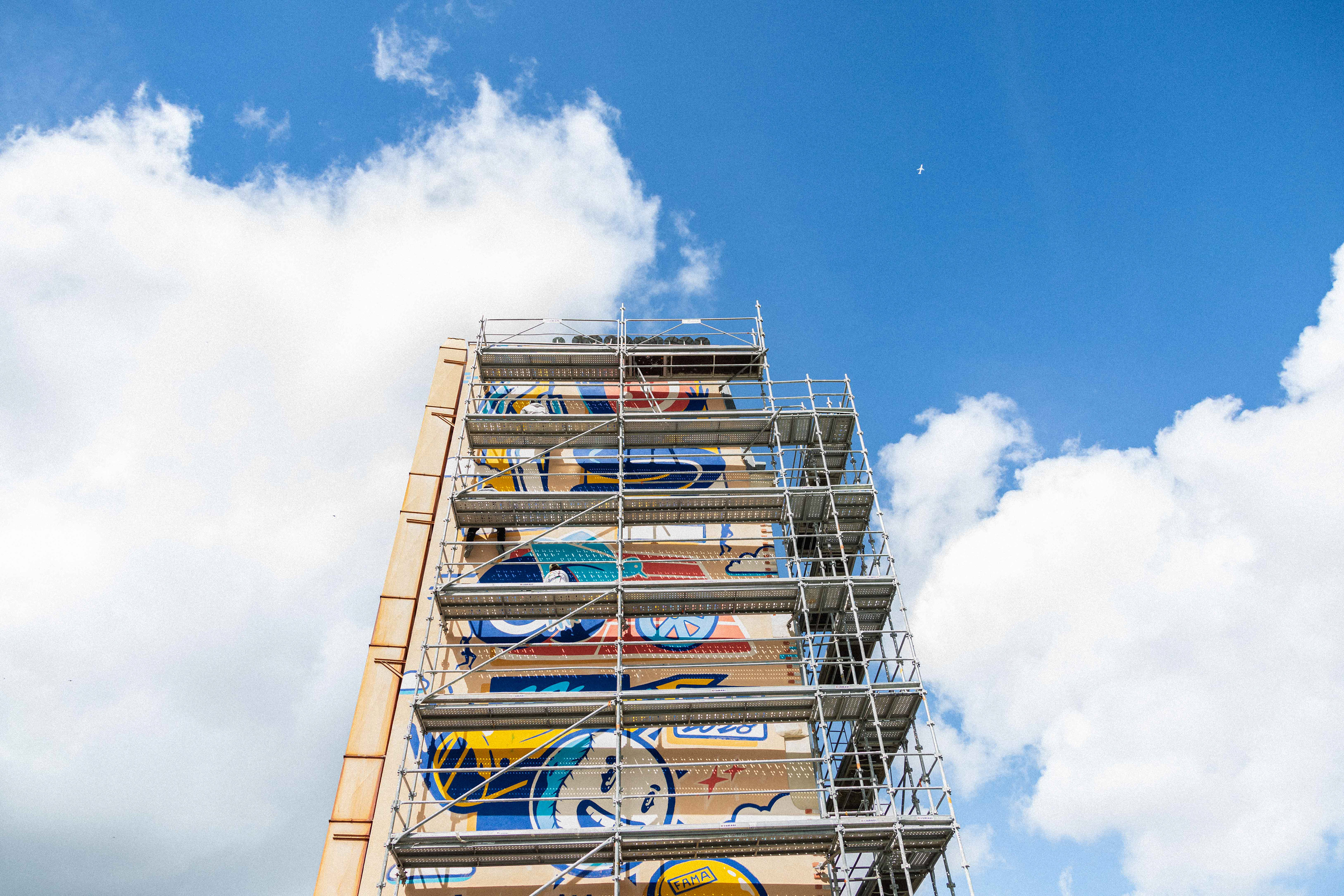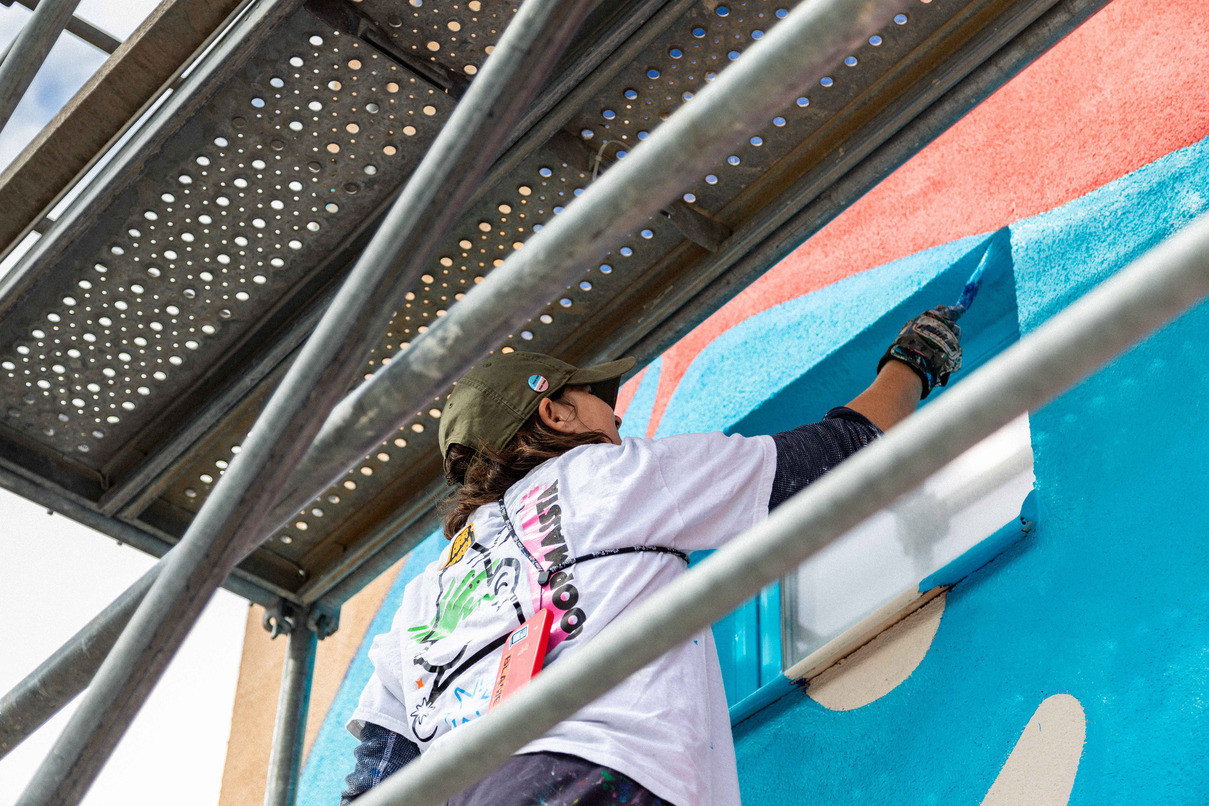 Sur le chantier avec les artistes Katbing & Kekli. Crédits photo : ©Hypermur / Collectif Le Réseau